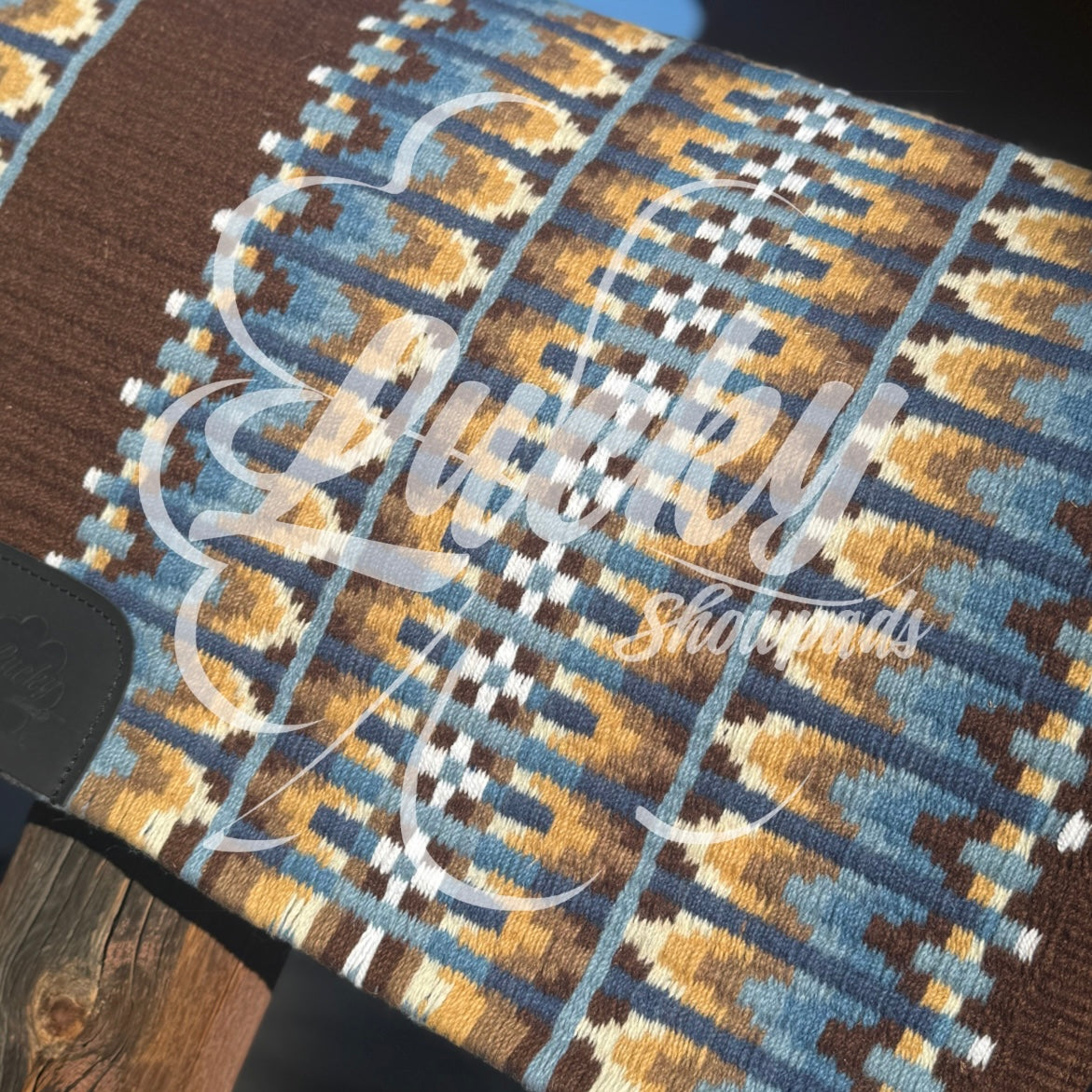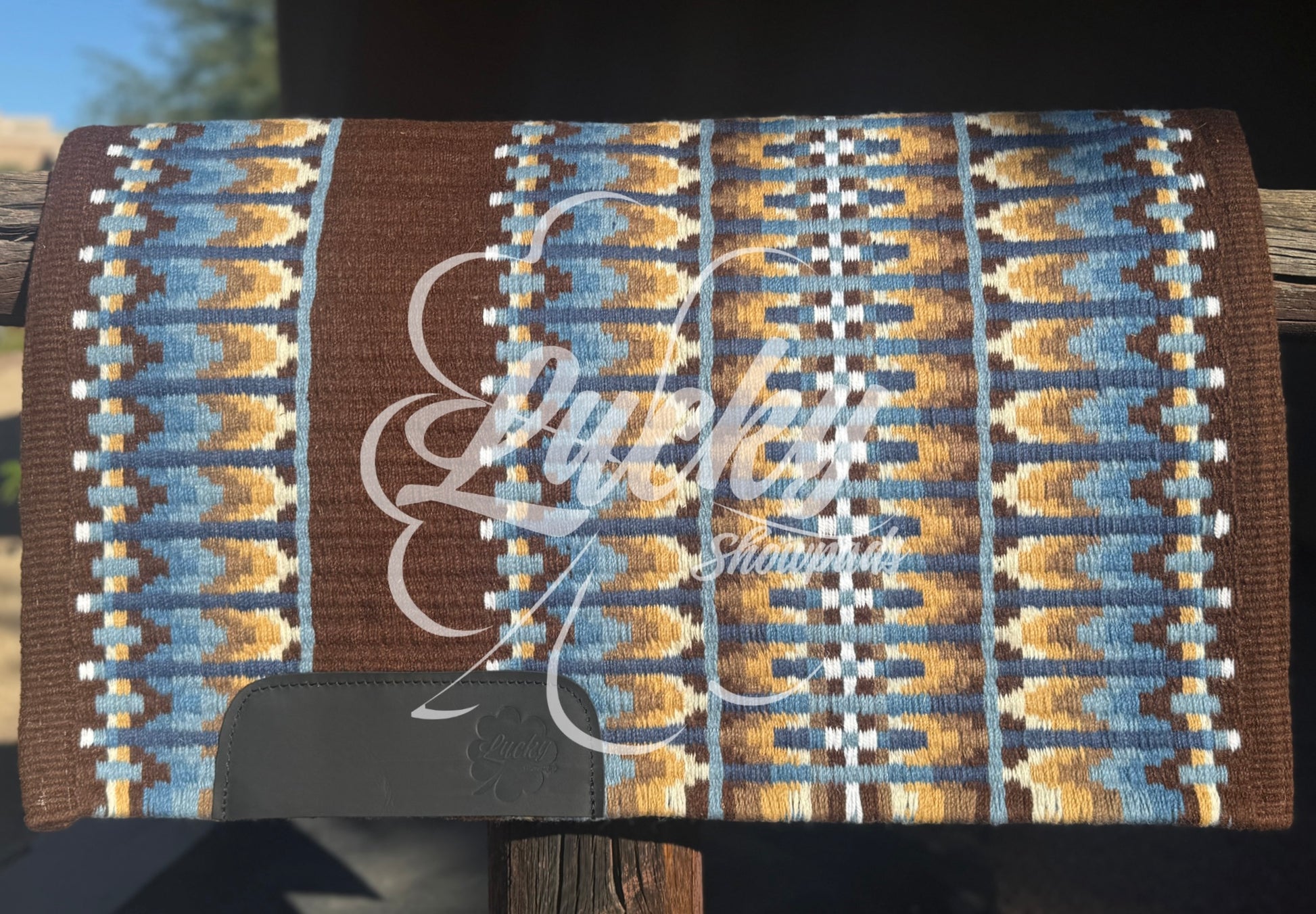 (Brown base, gold, tan, cream, slate blue, icey blue, white)