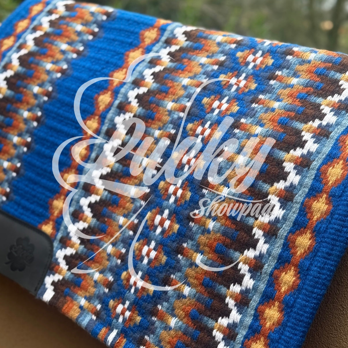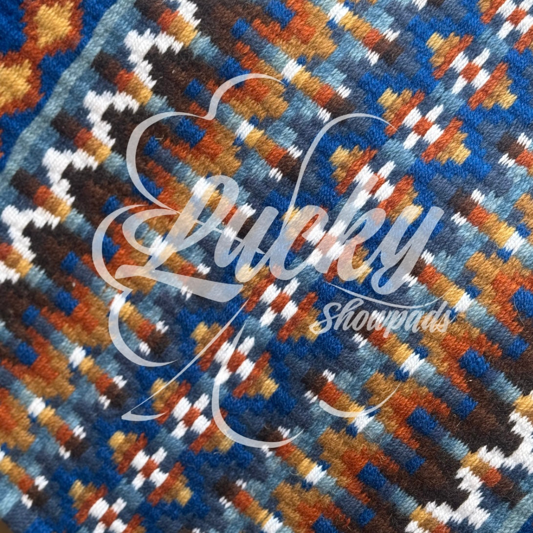(Bright royal blue base, navy, icey blue, periwinkle, brown, rust, caramel, honey, white)