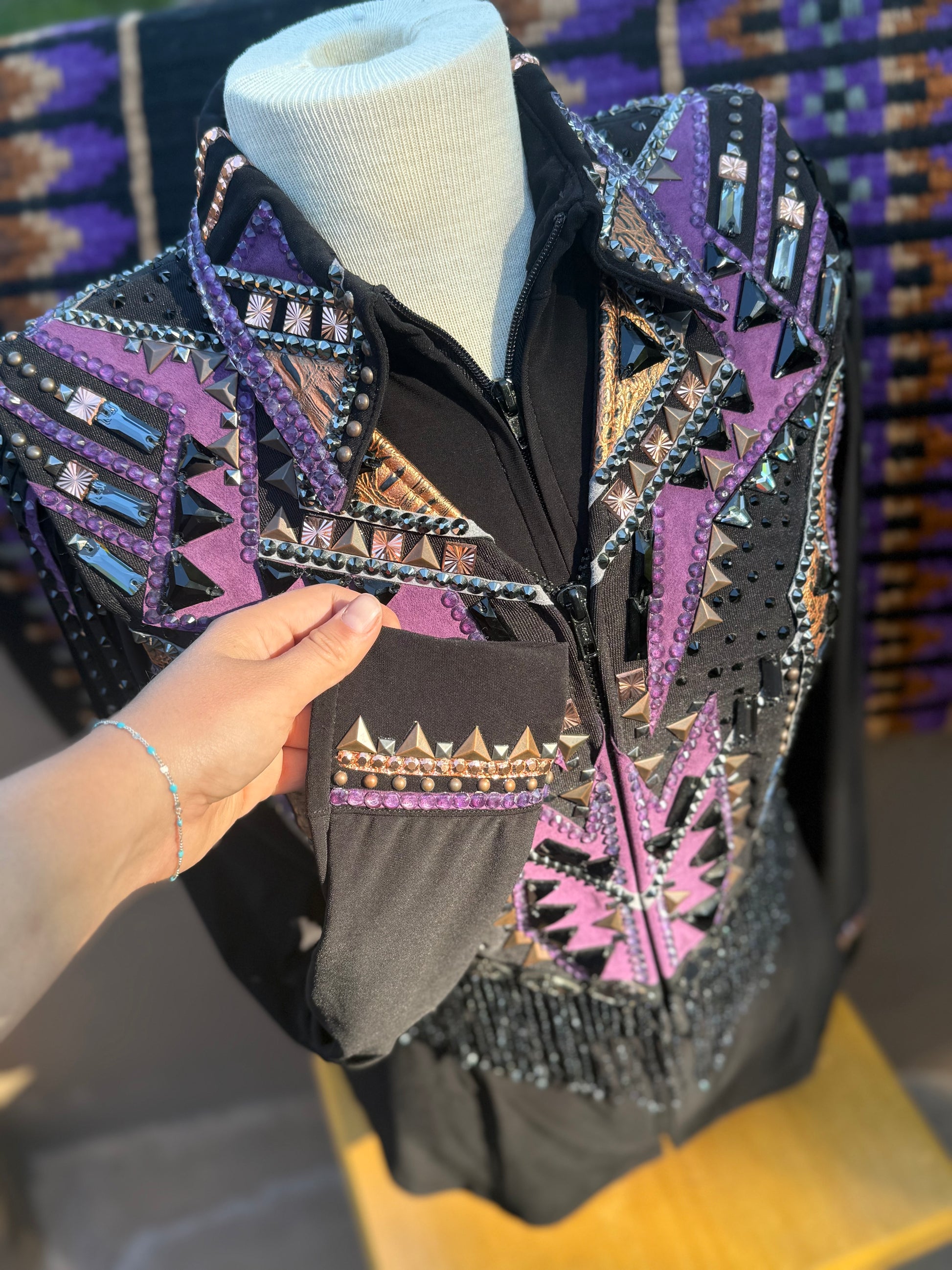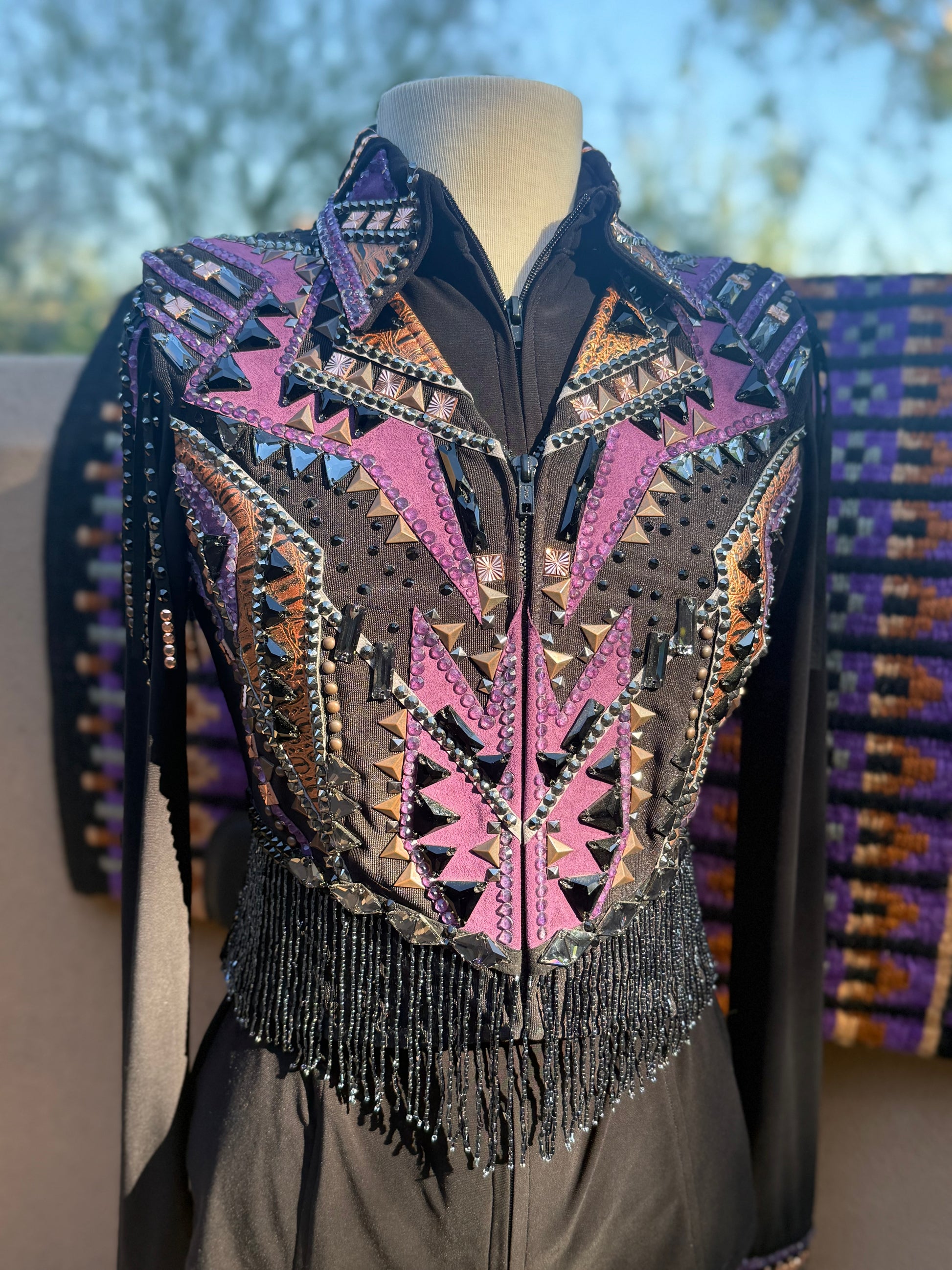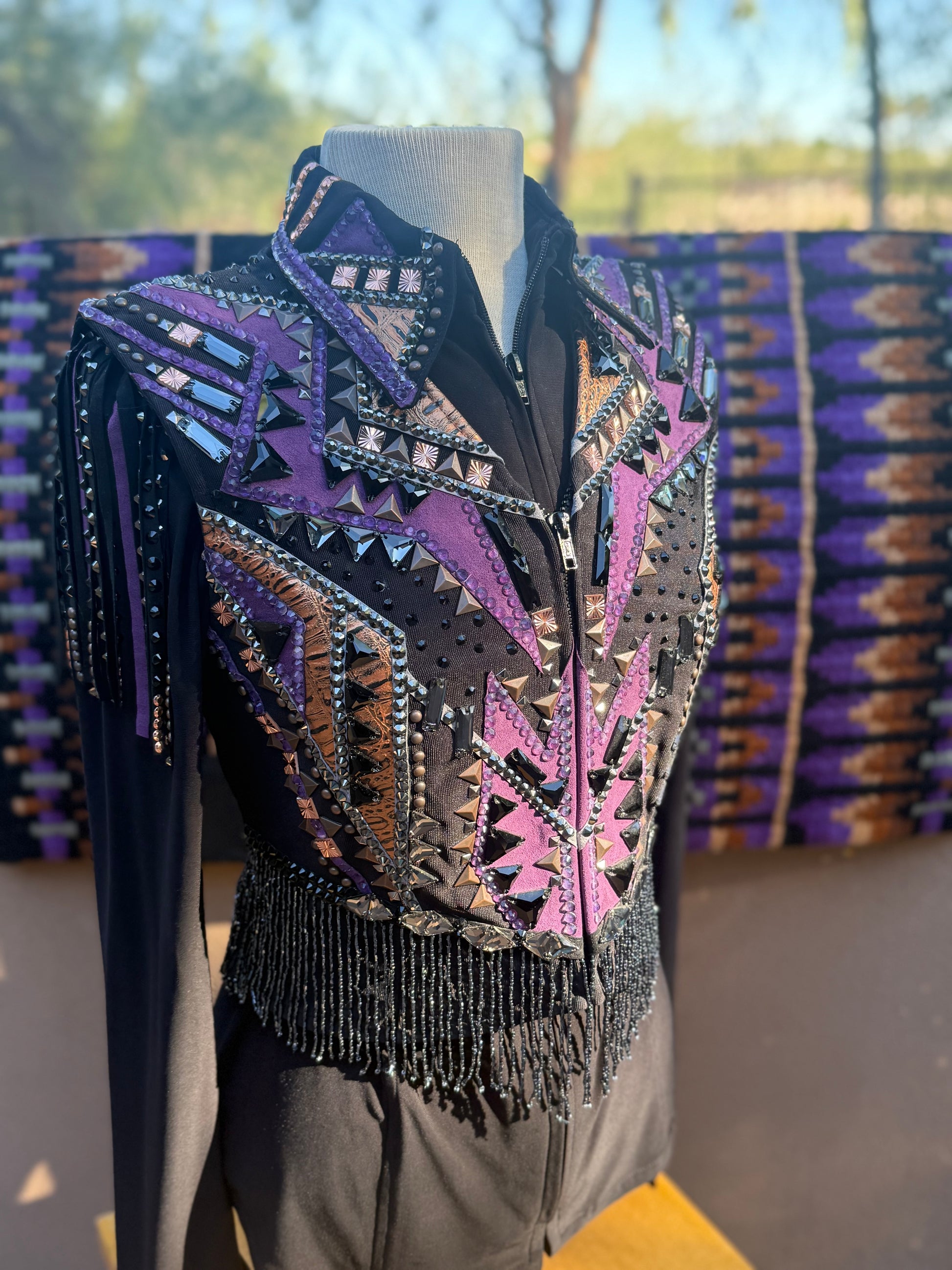 This is a complete outfit including an undershirt, vest, and perfectly matched Lucky Showpad! This outfit SPARKLES in the showpen and has only been worn 2 times! No stones missing in incredible condition!