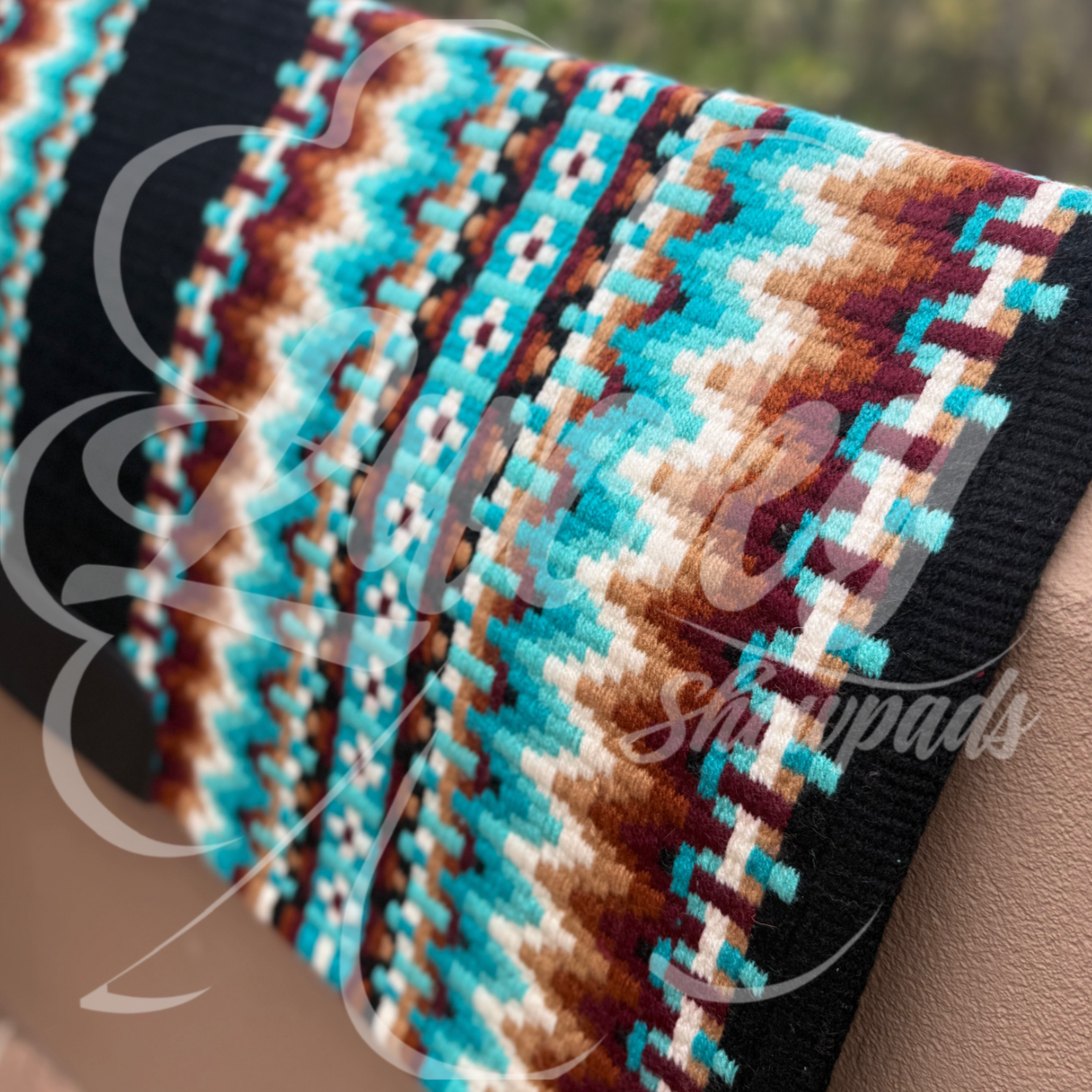 (Black base, light blue, aqua, cream, tan, rust, burgundy)